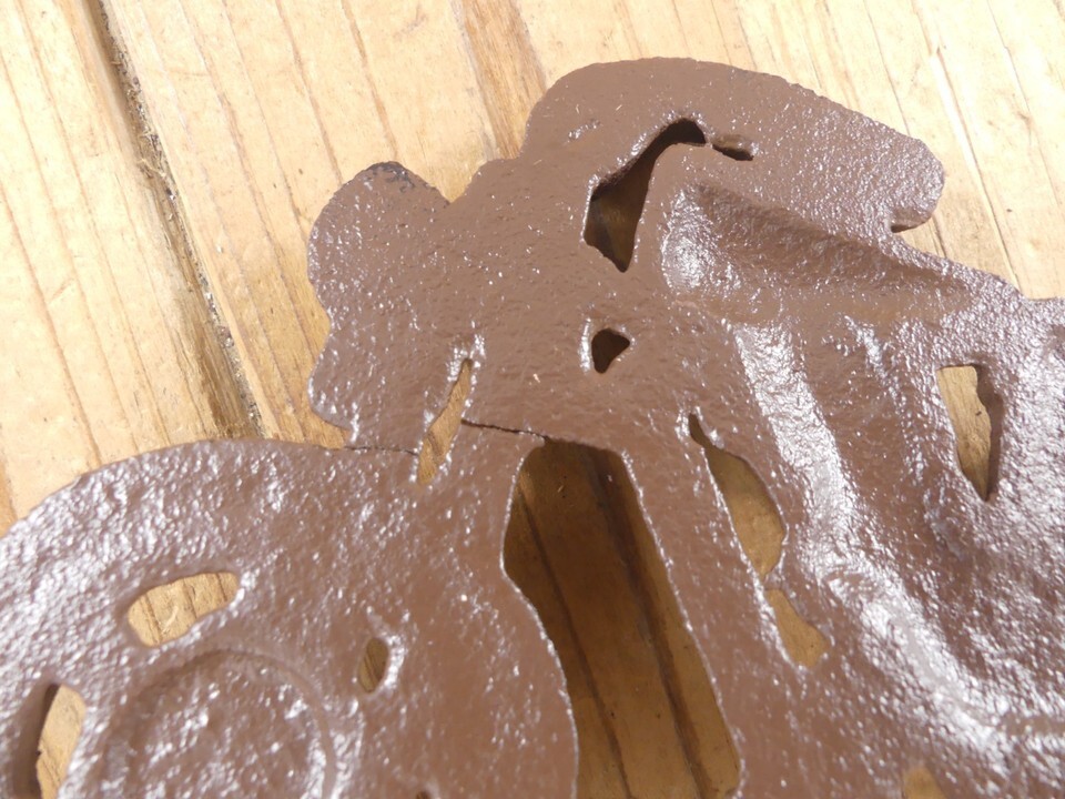 Cast Iron Motorcycle Wall Mount 4 Hook Hat Key Towel Leash **CRACK IN CASTING**