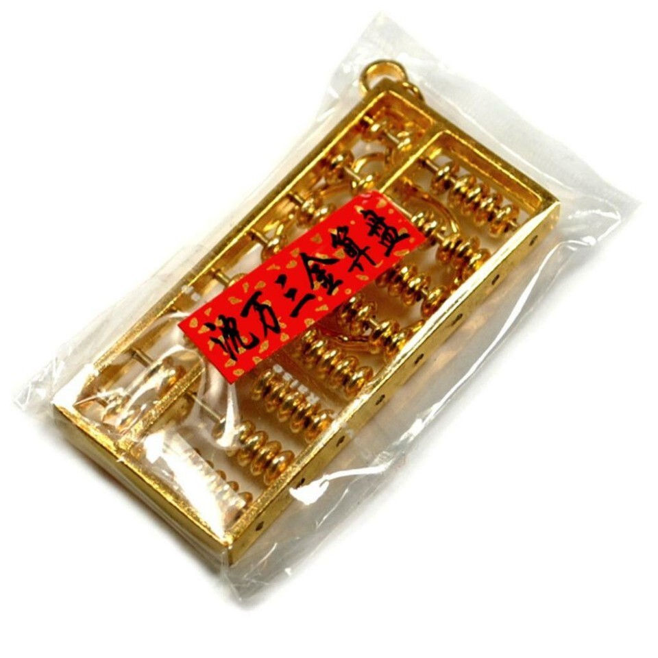 ABACUS KEYCHAIN 2.25" Metal w Moving Beads Key Ring Gold Tone Chinese Feng Shui