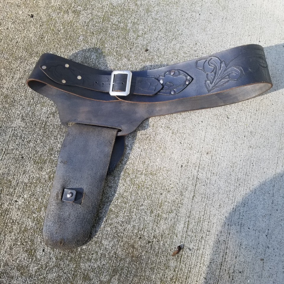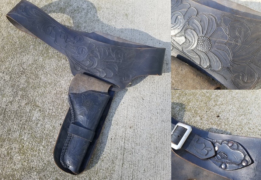 Hand Made Belt Holster Leather BLACK Size 45 1/5 Revolver Western VINTAGE