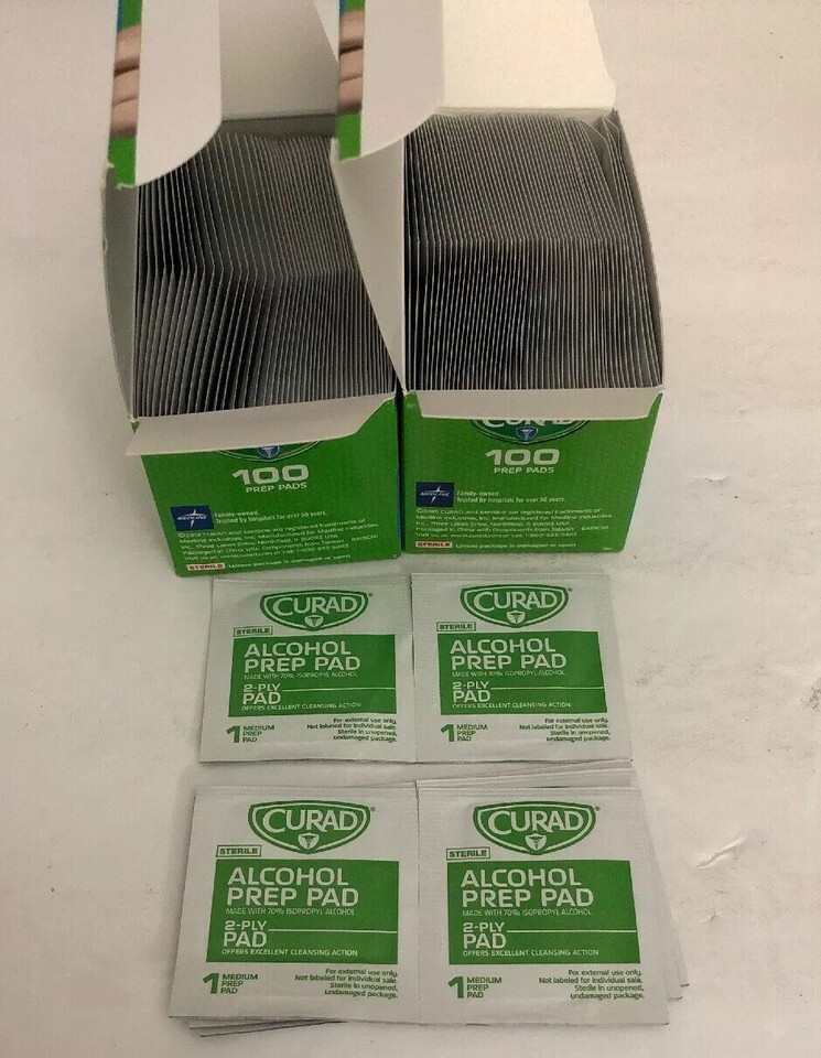 Curad Alcohol Prep Pads Medium-(Lot of 2 Boxes) 200 ct. Condition is New. Shipped with USPS Priority Mail.