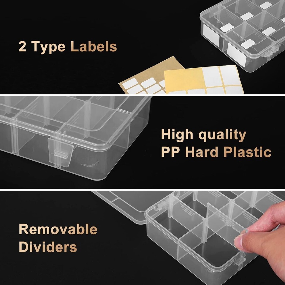 Widely Uses: This craft organizer box with internal girds is perfect for storing beads, jewelry, earrings, crafts, decorative items, miniatures, buttons, small toys, safety pins or as a collection for any of your favourite gems. Comes with 2 sheets of labels to easily mark and differentiate the placement of items.