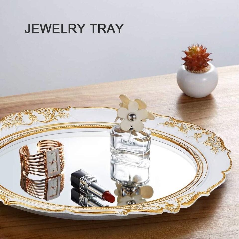 MULTIPURPOSE -The mirror can be also used as a jewelry tray or as a fruit plate for wedding receptions.There are 3 colors available - Bronze/Gold/White.If 1 PCS cannot meet your needs, we also have 2 PCS for you to choose from, and you can get two mirrors at a more affordable price.