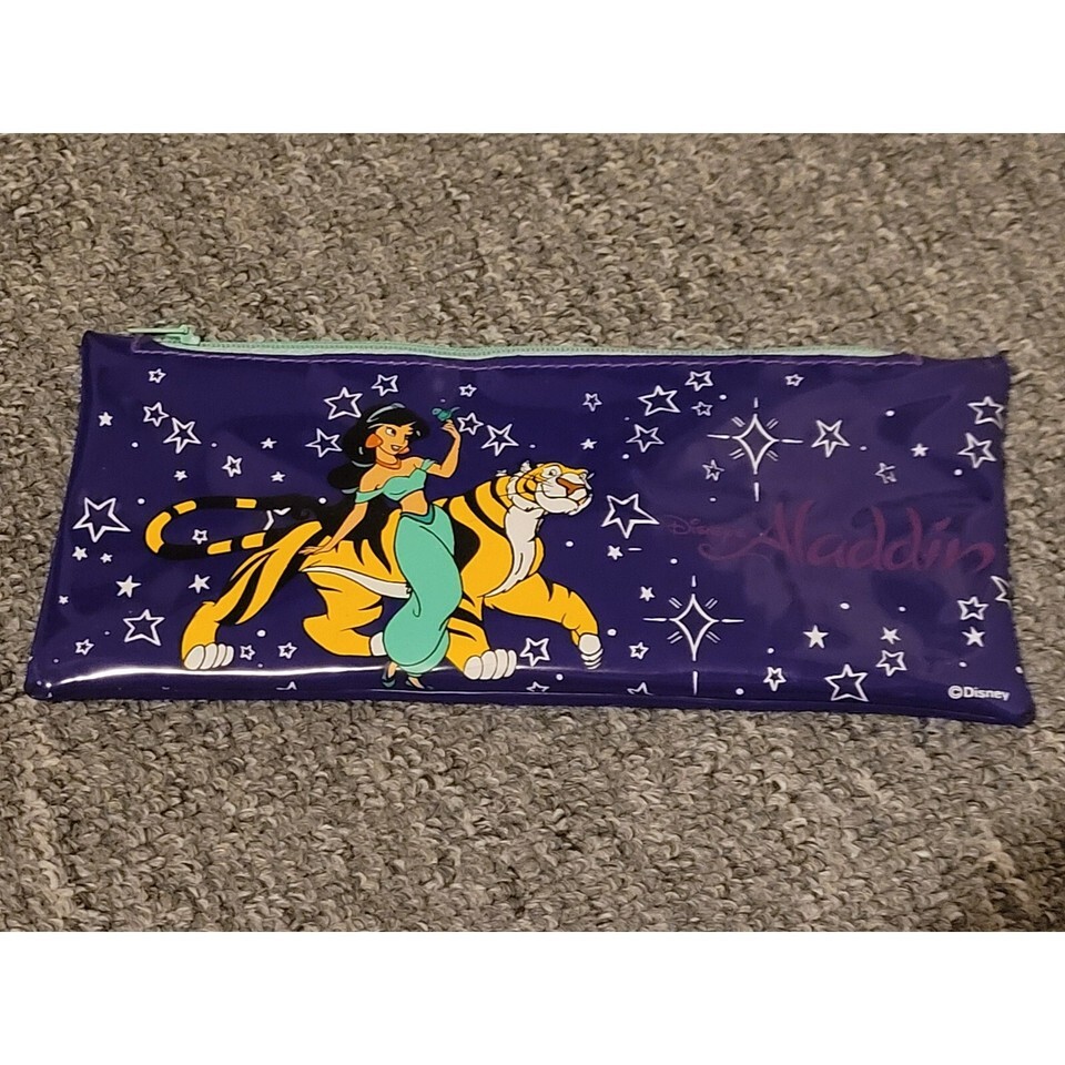 HTF vintage 1990's Aladdin Princess Jasmine and Rajah Pencil Case. The pencil case is PVC plastic style and still in very nice shape, no holes or cuts in the plastic. Comes with the ruler, eraser and a stencil as well (unsure if the stencil was originally part of it). Zipper still works nice too. This is harder to find! Nice collectable piece.