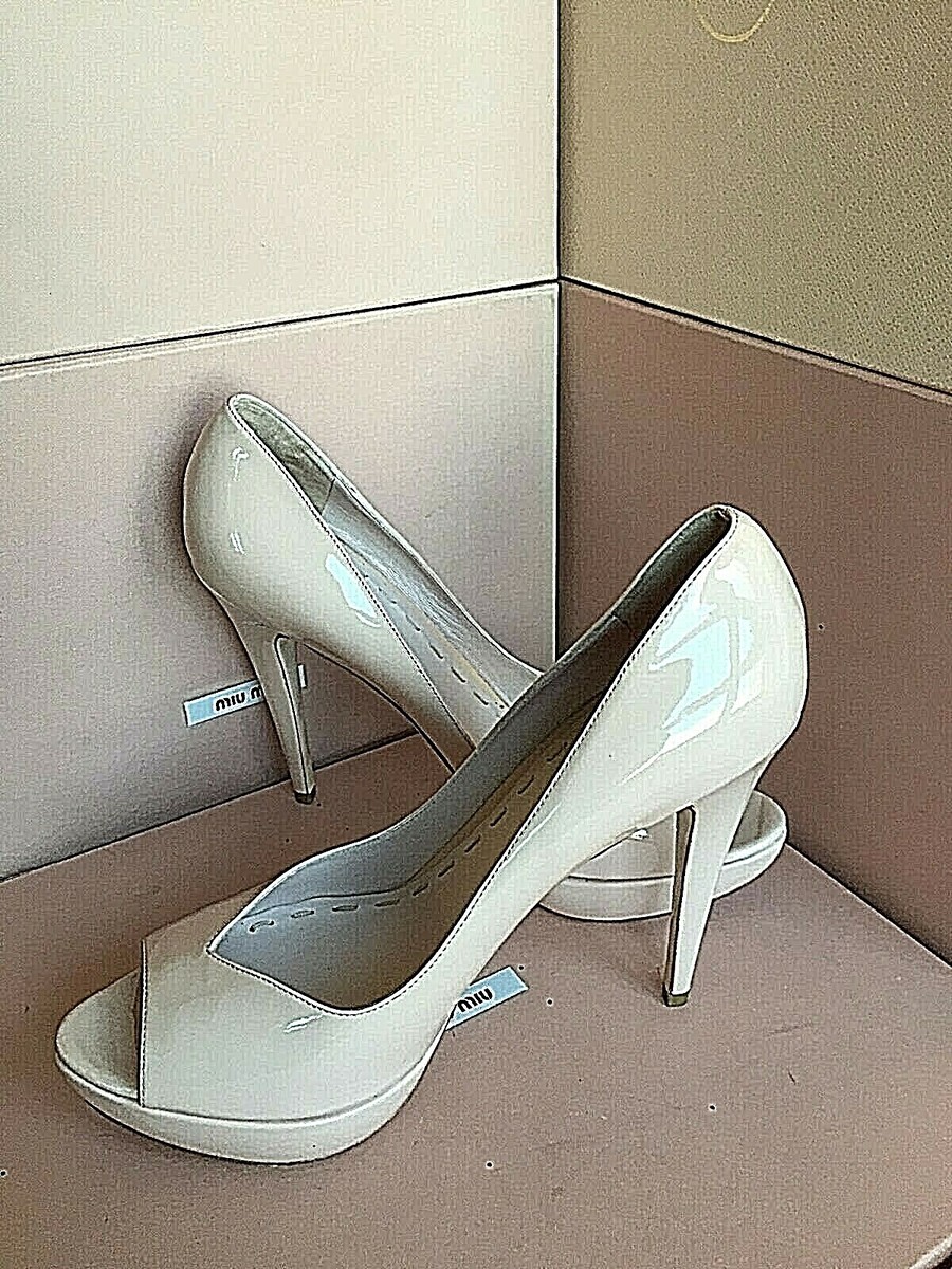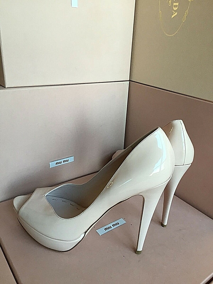 Miu Miu Women's Shoes Creamy Platform High Heels Size 40.5 .