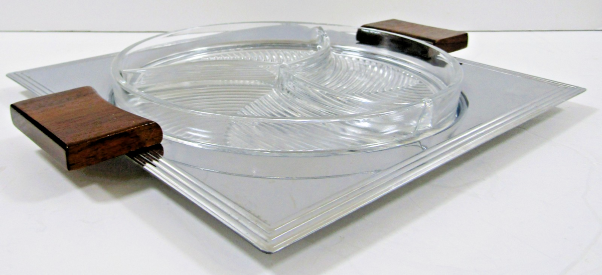 Manning-Bowman 1930s Chrome Glass Wood Handled Serving Platter