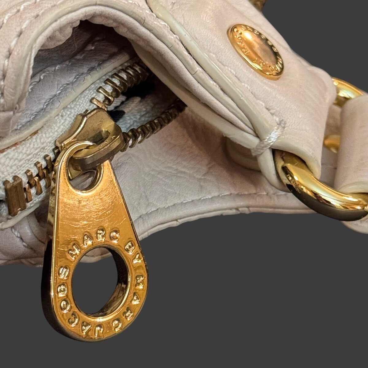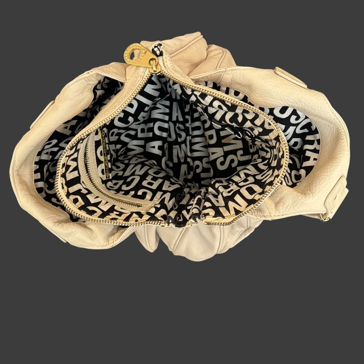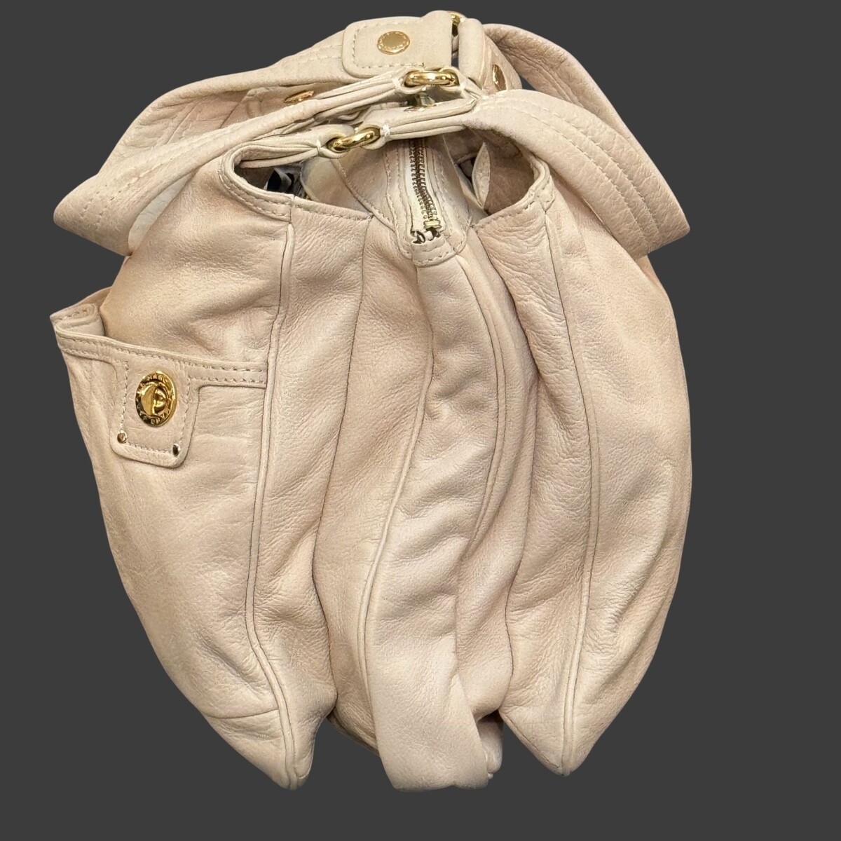 Marc by Marc Jacobs Classic Q Slouchy Satchel Shoulder Tote – Beige Pebbled Leat