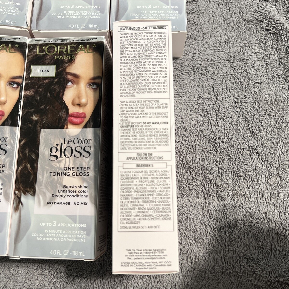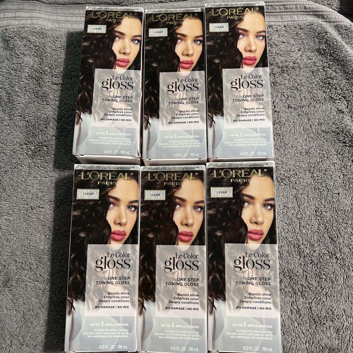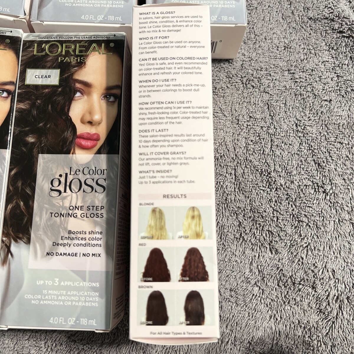 L'Oreal Le Color Gloss One Step Toning Gloss 4oz ~CLEAR - 6 Pack. Some of the boxes have slight damage.