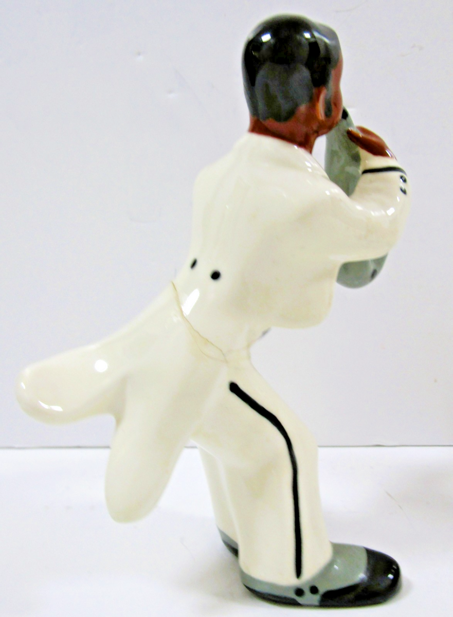 The saxophonist has a repair at the waist, signed to base