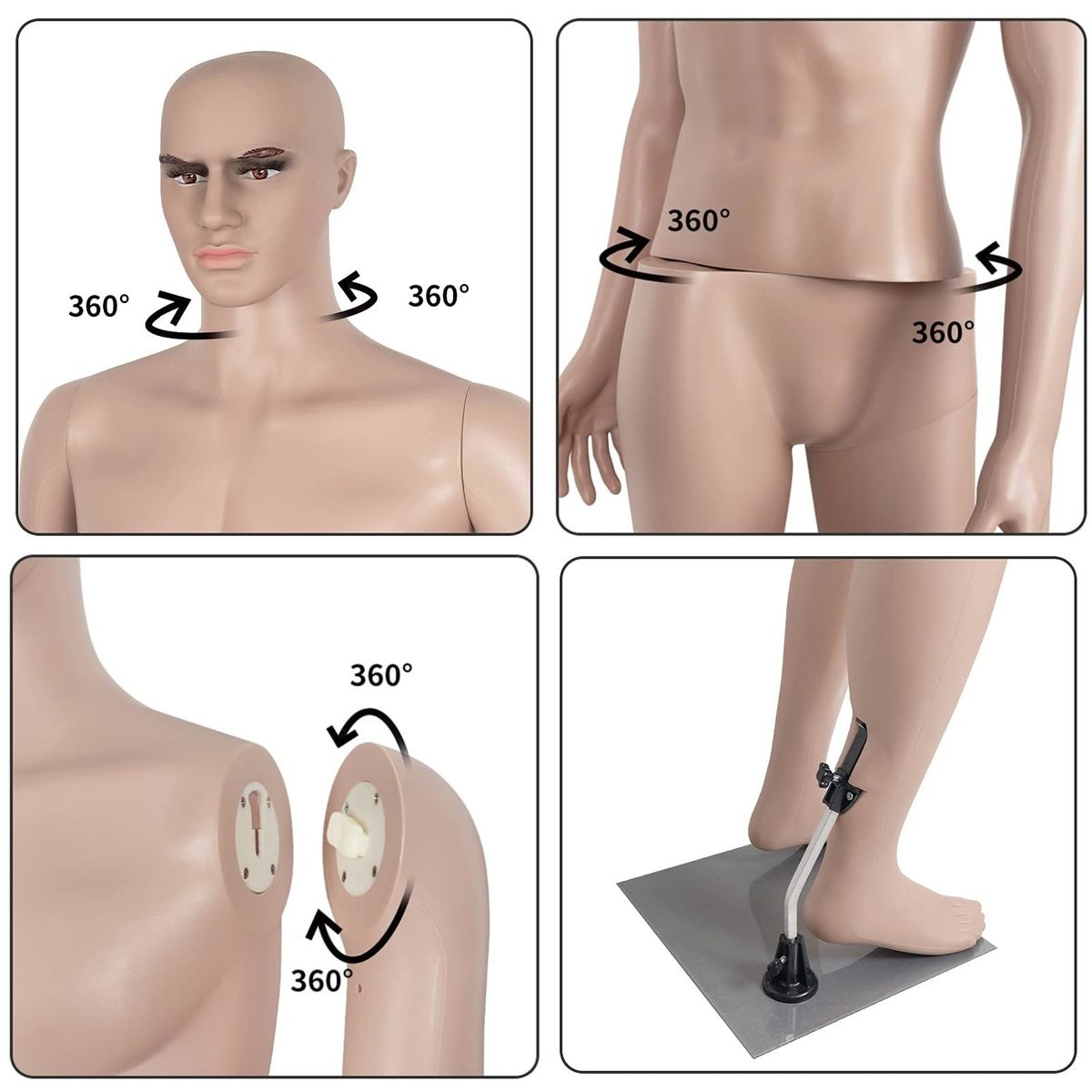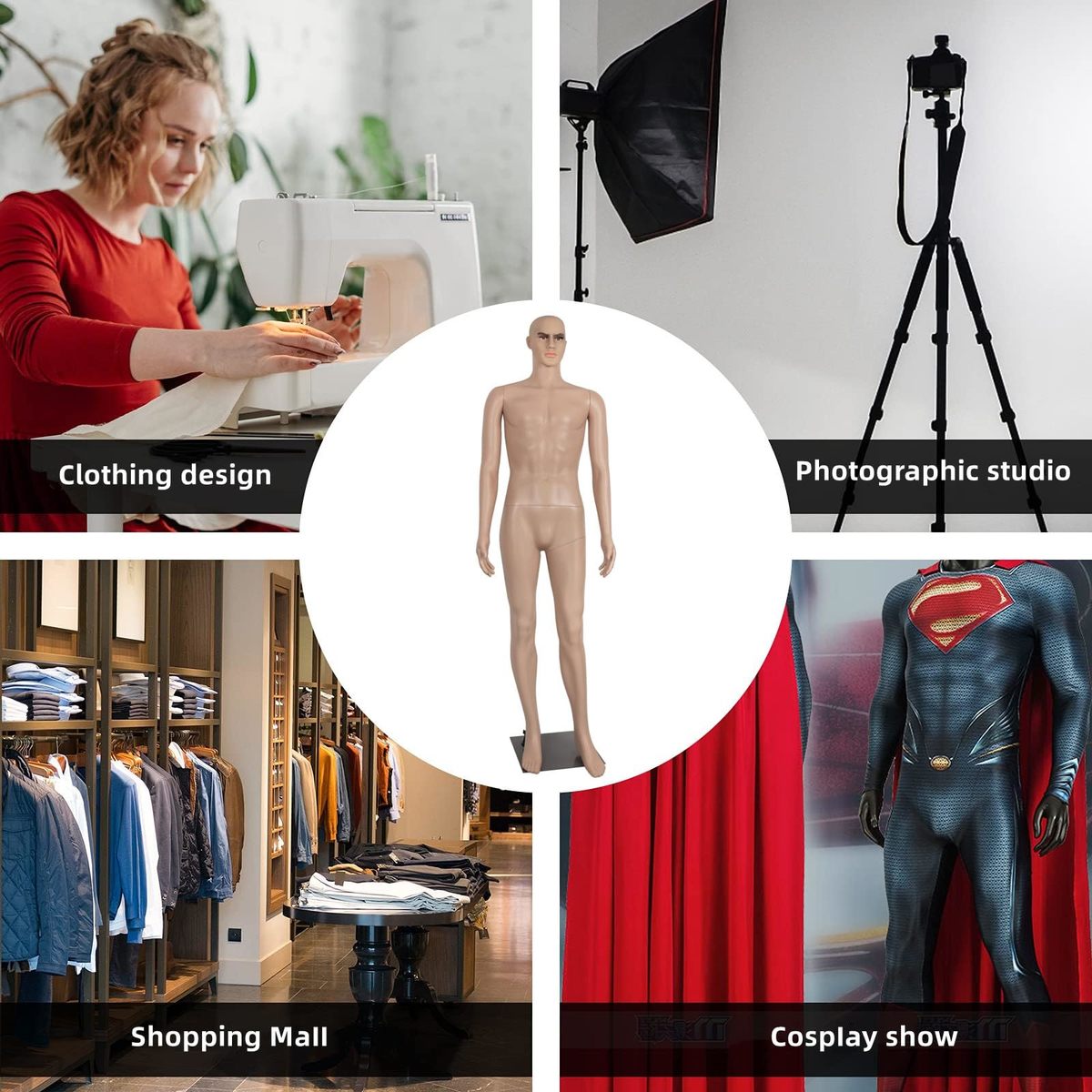 Male Mannequin 73 Inch Adjustable Full Body Torso Dress Form 360° Rotating Head