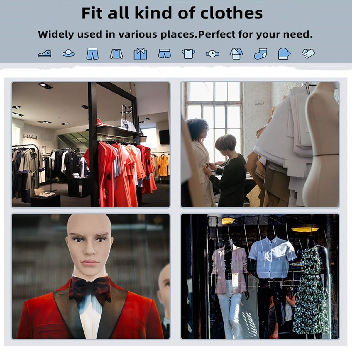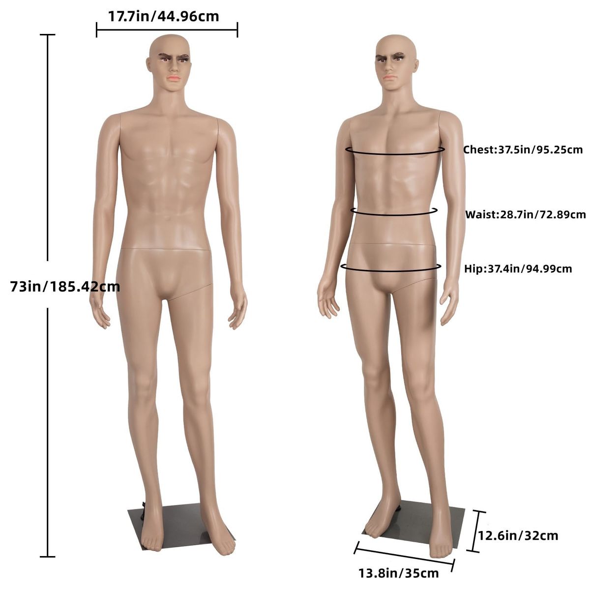 ?Lightweight And Portable?The male mannequin is only 17 pounds, and you can easily move the dress form side to side. The full body mannequin is designed to fit a standard figure(Height: 73",Chest: 38",Waist: 30",Hip: 37"). This realistic mannequin stand can fit any type of clothing like shirts, jacket, blouse accessories.