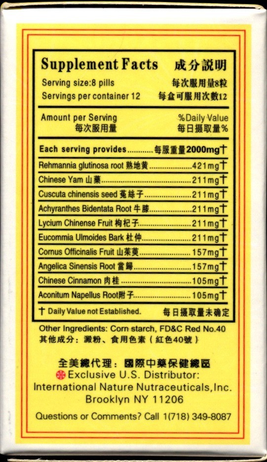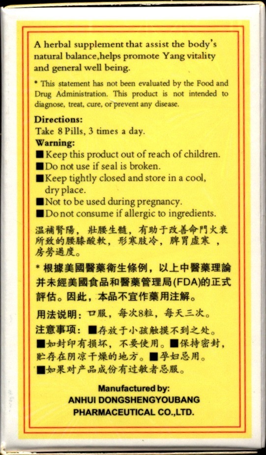 Chinese Dietary Herbal Supplement - Yang Vitality - Adrenal Support Tea Pills (You GUI WAN)
