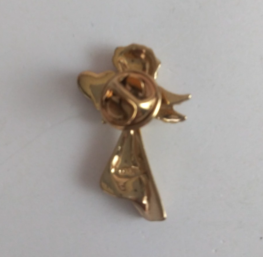 This is for a Vintage Gold Tone Angel Holding Pink Jeweled Heart Lapel Hat Pin.