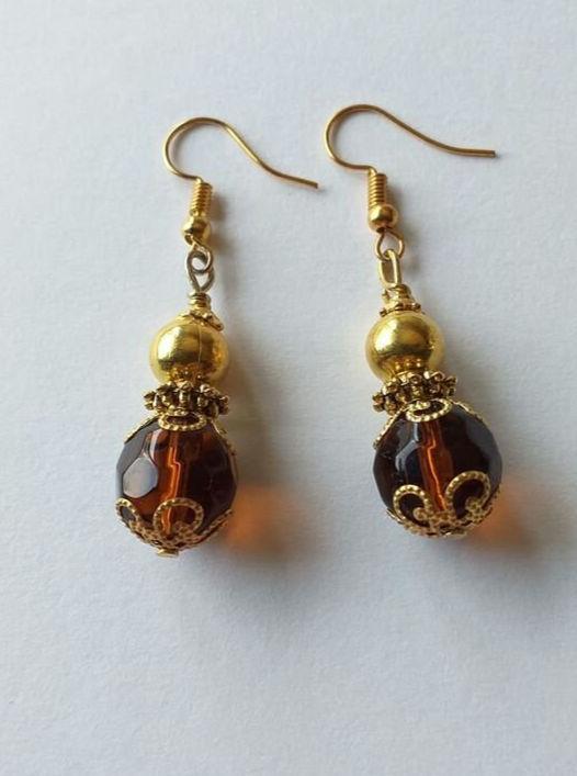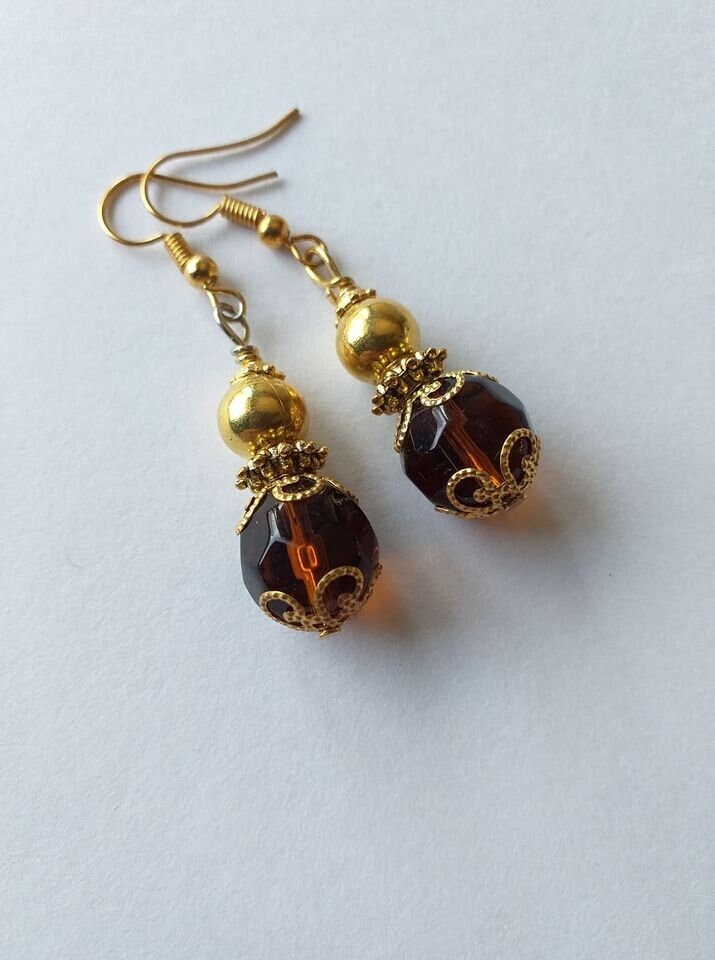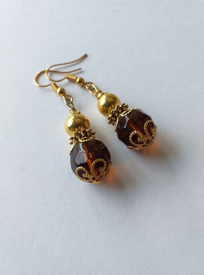 Beautiful Victorian filigree gold tone and brown faceted glass beads earrings. Dangle earrings. Drop earrings . Boho earrings. Bohemian earrings. Gold - tone filigree ornaments and brown faceted glass beads earrings. Vintage style earrings. Oriental style earrings. Beautiful earrings. Baroque earrings. Antique style earrings. Royal style earrings. Gift for Her. Birthday gift .