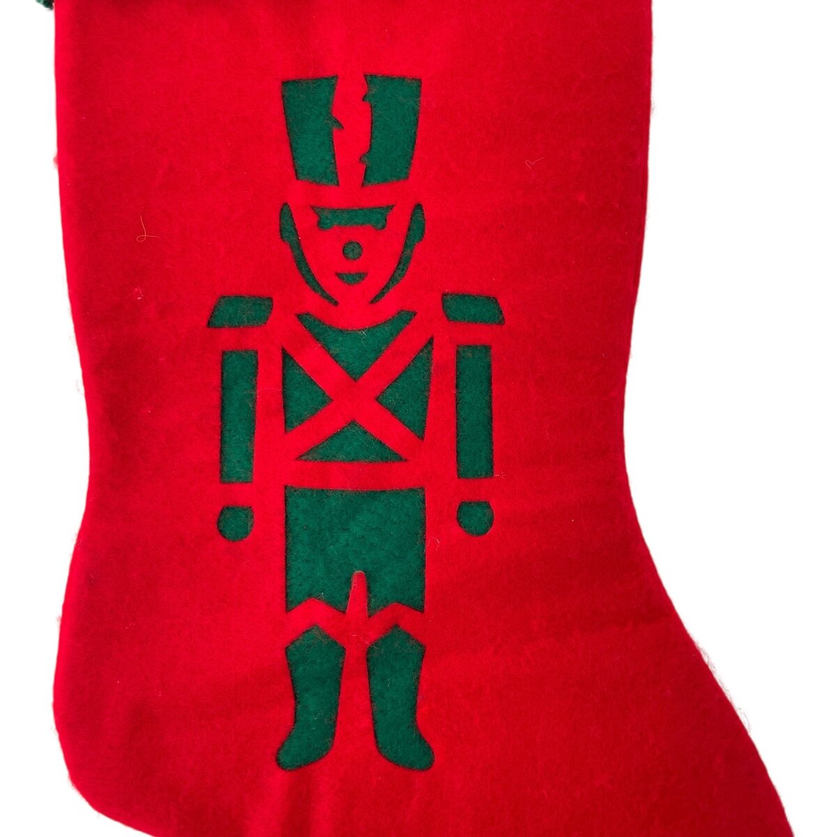 Medium Christmas Stocking Nutcracker Design Red Green Felt