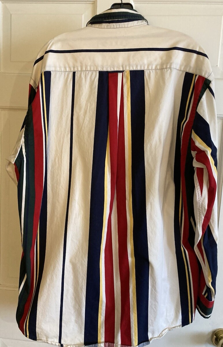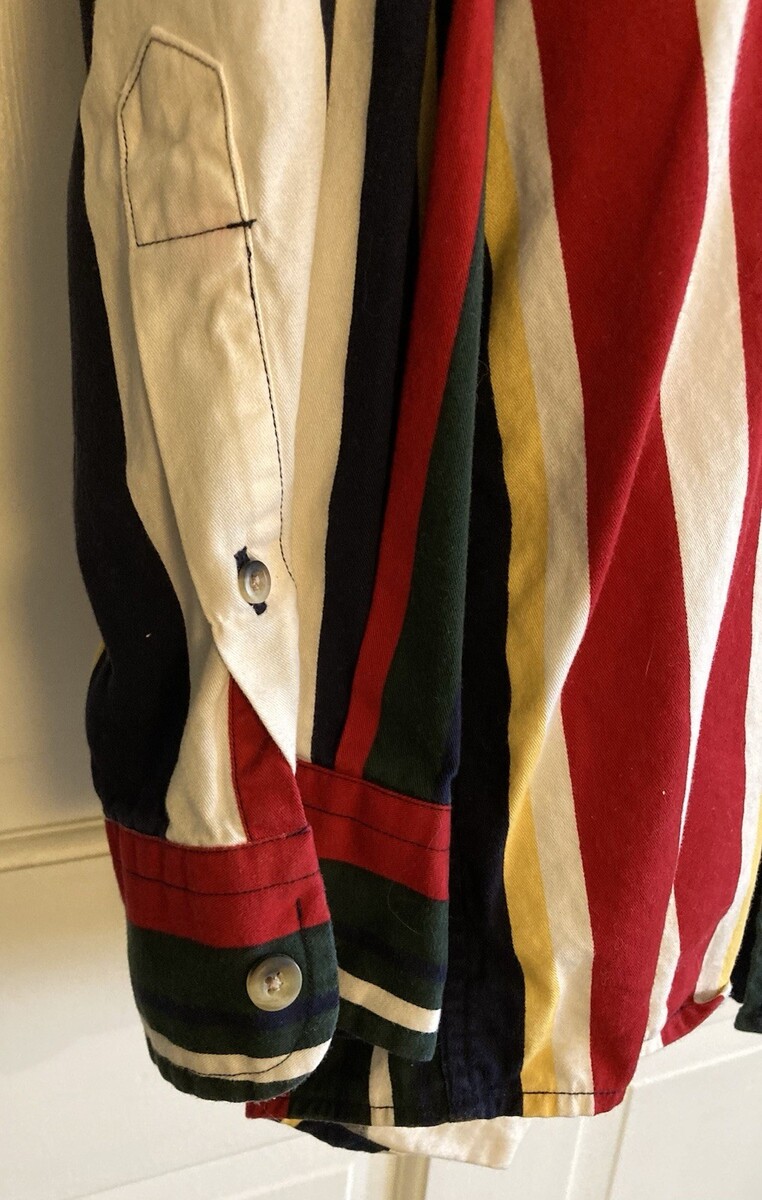 Vintage 90s NAUTICA Color Block Cotton Striped Button Front Shirt Size L