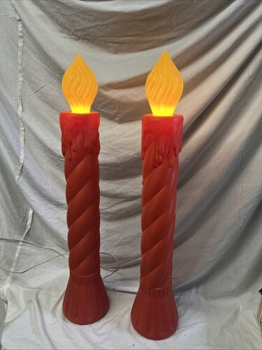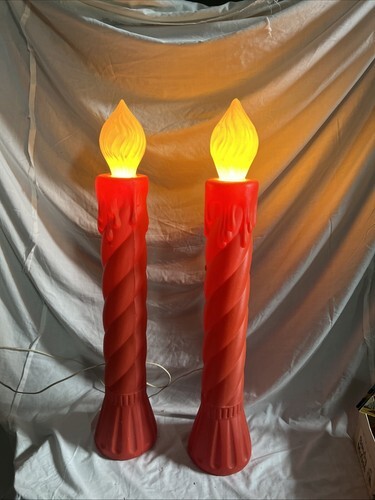 PAIR Vintage 36” Union Products USA Christmas Blow Mold Lighted Red twist Candle