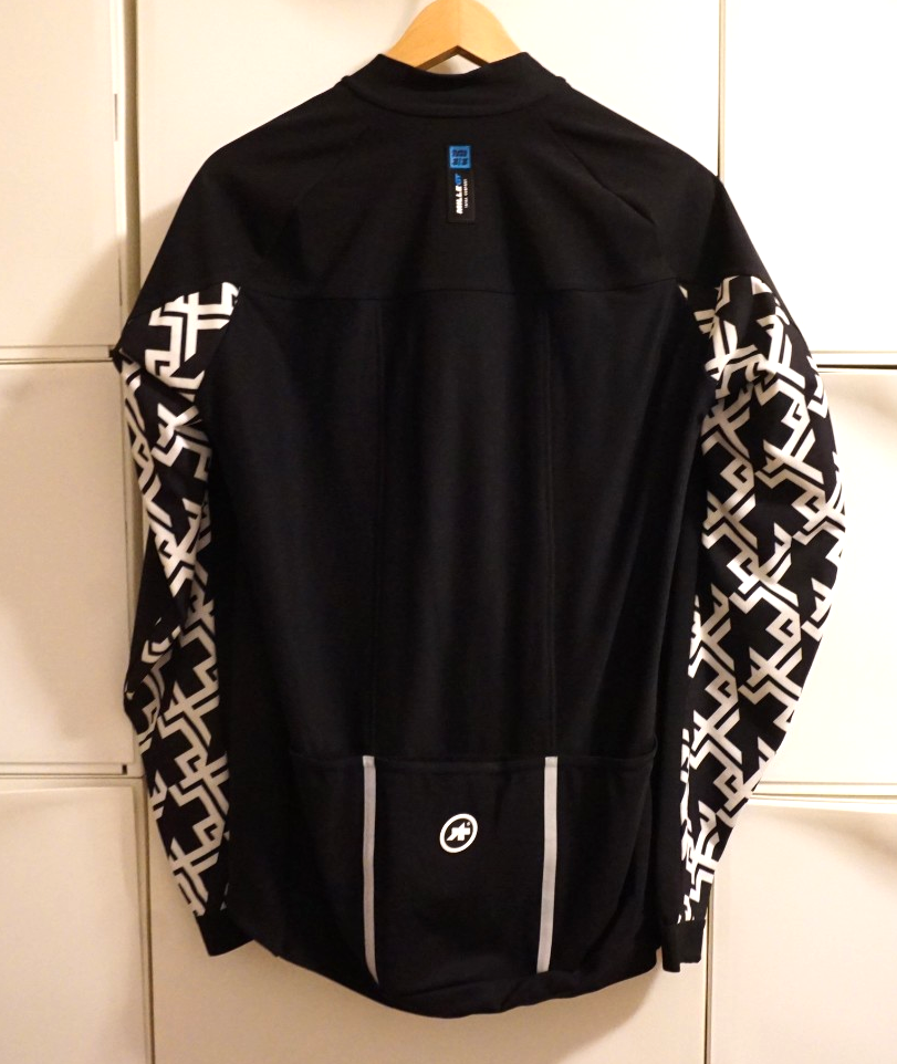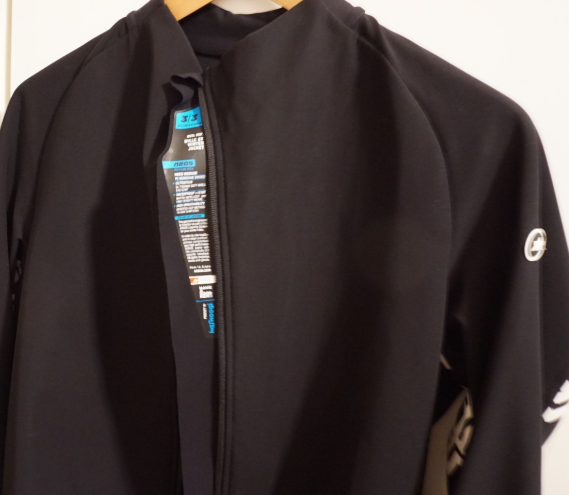 Premium Assos winter jacket with RX heavy brushed interior, wind-resistant front panels, breathable rear, full-length zipper, reflective details, and 3 rear pockets.