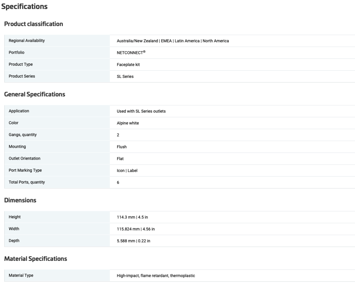 Wide range of port configurations, including single gang in 1-, 2-, 3-, 4- and 6-port and double gang in 6-, 8- and 12-port