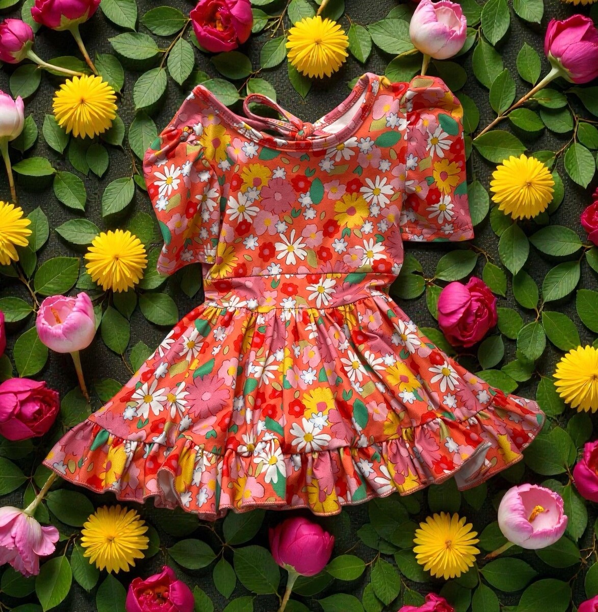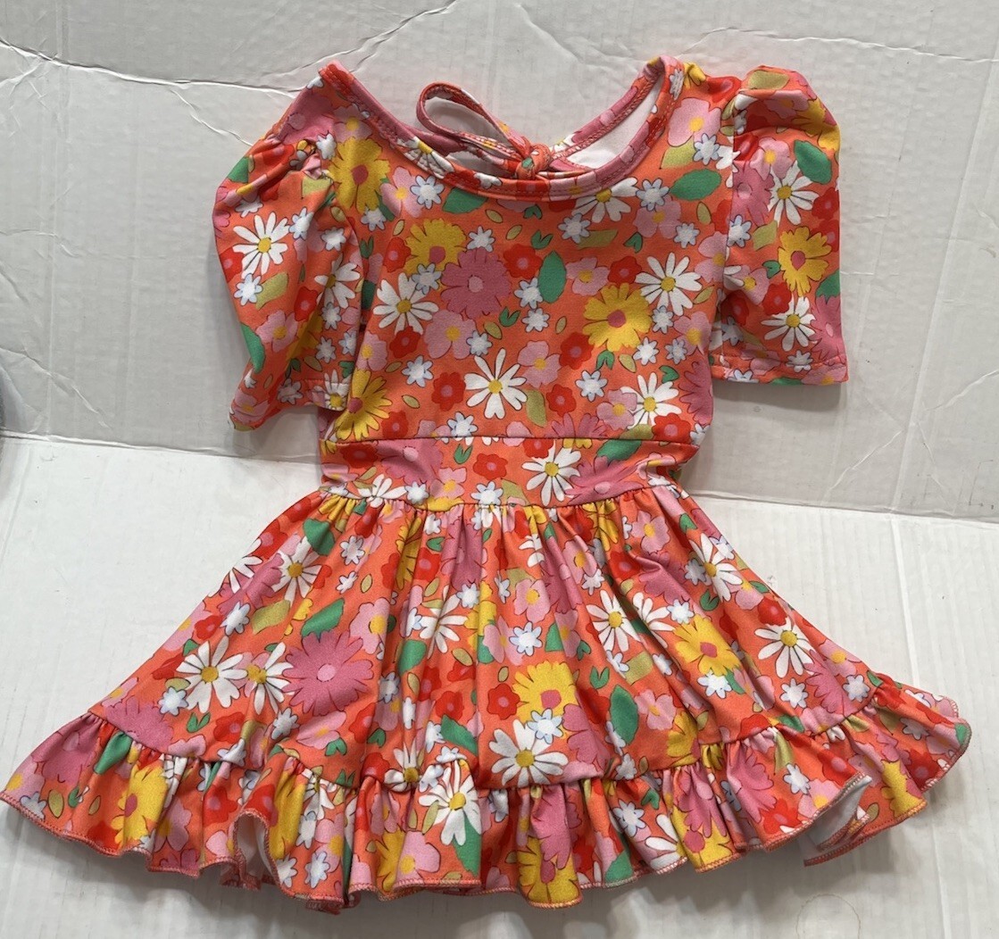 Girlhood Twirl short sleeve Dress Colorful Springtime flowers pink 12-18 Months