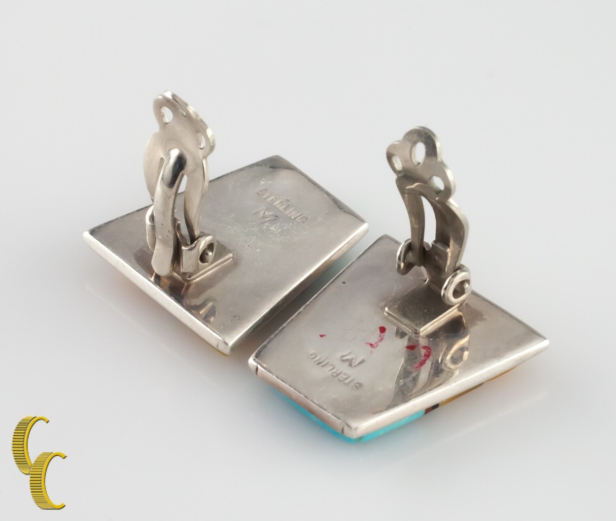 Sterling Silver Lapidary Inlay Clip-On Earrings Gorgeous