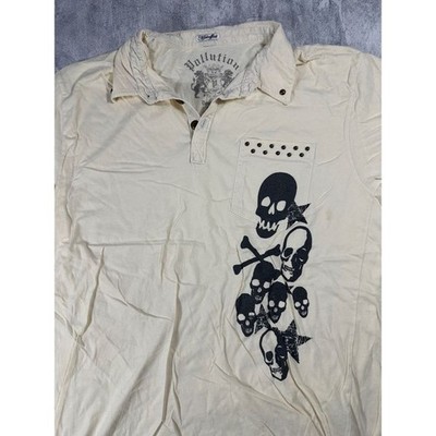 Pollution White Y2K Colllared Shirt Tailles: L, XL, XXL -Brand New! -Contion parfaite avec des etiquettes -Order plusieurs articles pour une remise - Souppe dans un emballage propre, cette chemise a col de pollution apporte une ambiance Y2K grungy avec des accents materiels audacieux et une finition robuste et en detresse. Fabrique pour un look hors concours, il combine des details enerves avec un tissu de haute qualite pour un style unique d'inspiration du street.