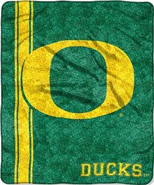 This is a 50" by 60" Plush Oregon Ducks Sherpa throw blanket.