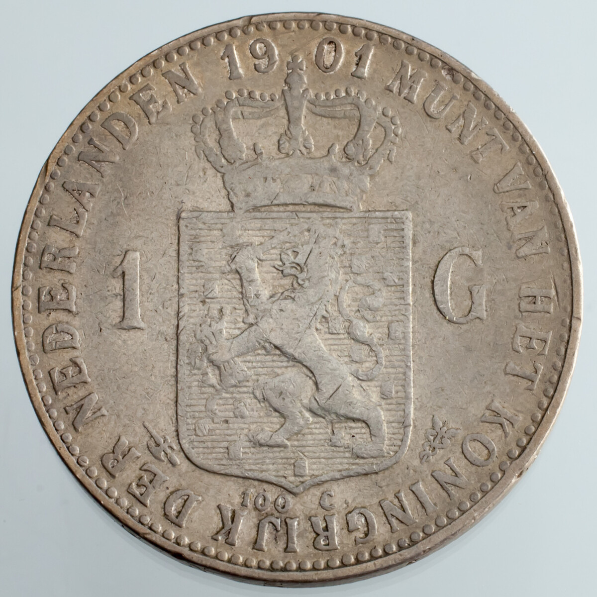 1901 Netherlands Gulden Silver Coin KM #122.1 VF Condition