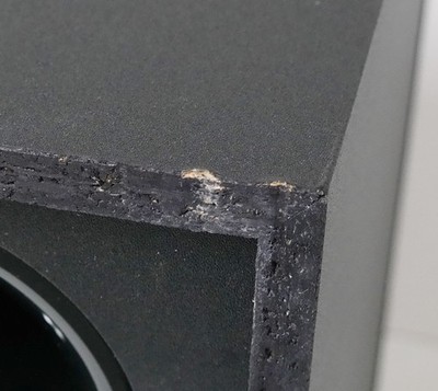 Description: Includes Soundbar with Power Supply, Subwoofer with Power Cable, Remote Control with Batteries, Optical Cable. Dents on front grill, some damage to both sides. Scratches on top to the left.