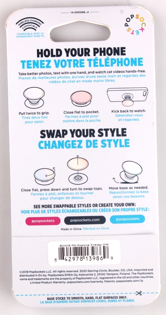 This is for a brand new PopSockets Phone Tablet Grip Positive Energy PopGrip With Swappable Top