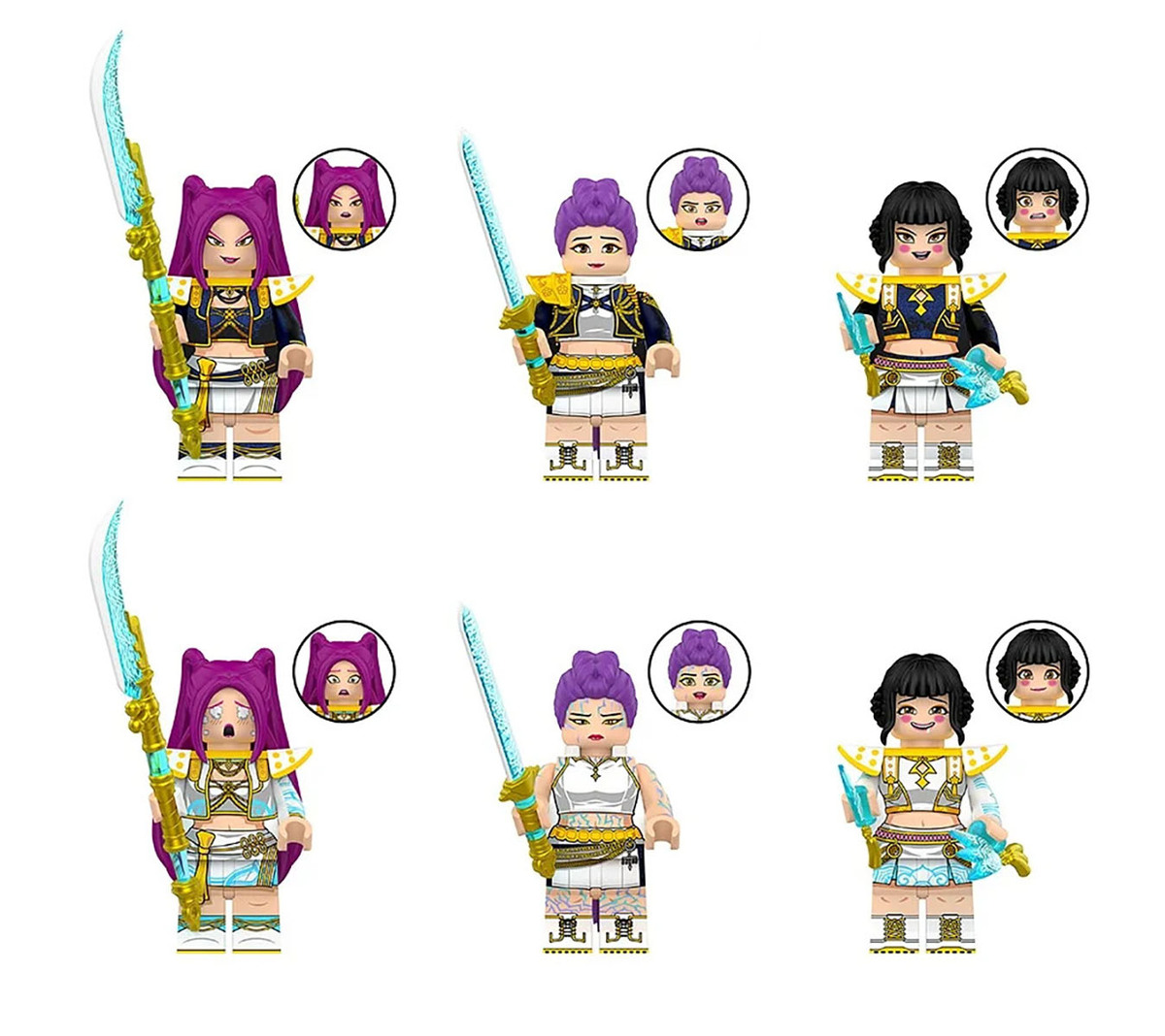 6Pcs KPop Demon Hunters Minifigures Rumi Zoey Mira with Weapon Mini Block Figure
