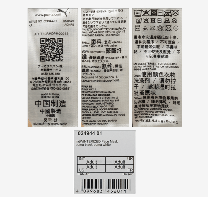 PUMA Individual Winterized Face Mask Sports Training Support Protection 02494401