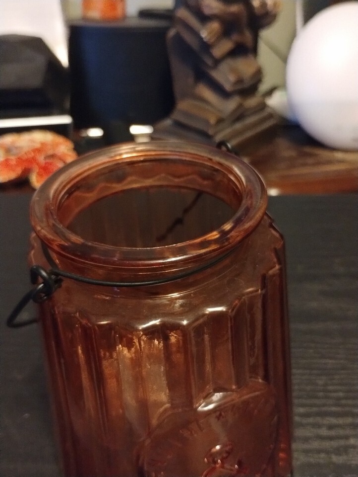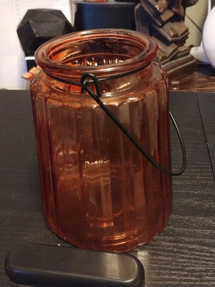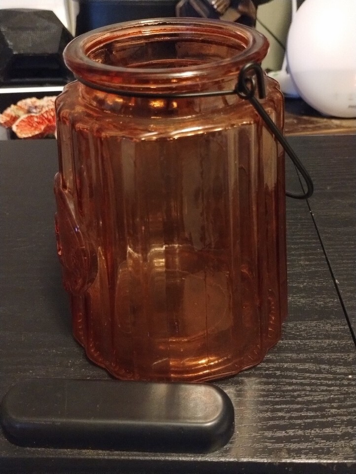 San Miguel Authentic Amber Orange Colored 100% Recycled Glass Jar Tealight Handl