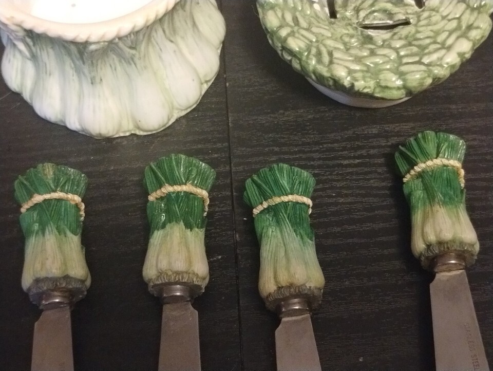 Vintage Jay Import Set Of 4 Vegetable Spreaders With Holder Bowl Rare
