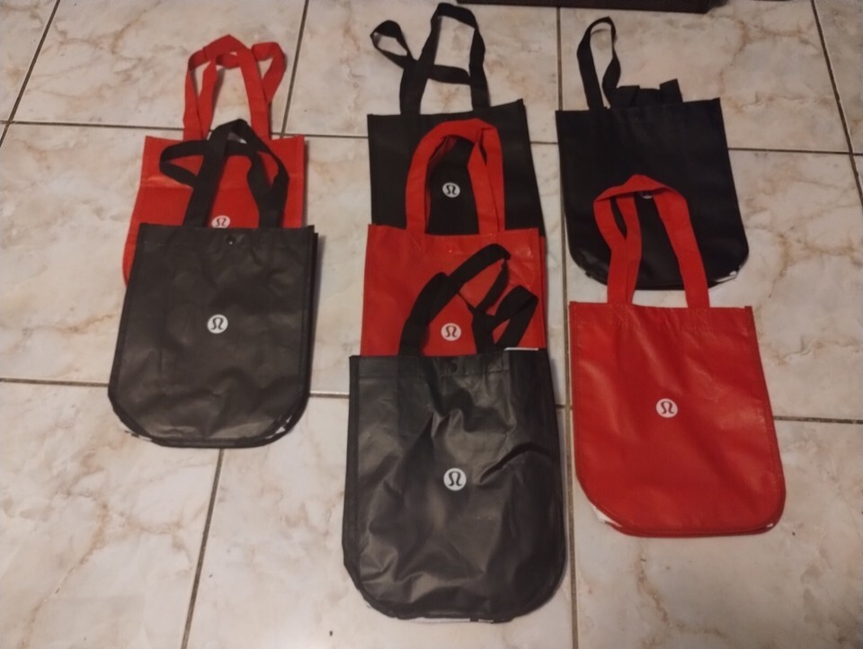 7 Lululemon Bags Shopping Bags Large Reusable Totes Black & Red 12 X 9