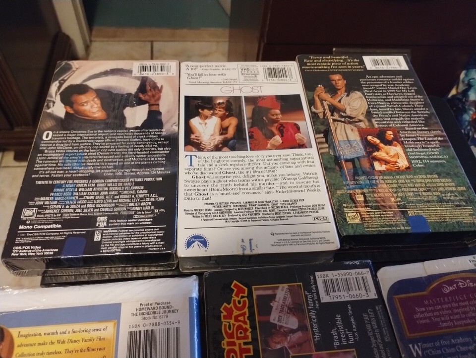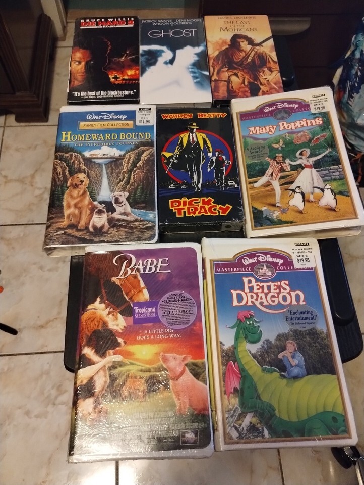 This VHS lot features 8 brand new, sealed tapes of various titles including Tracy Poppins, Ghost (1990 film), Bound, Babe, Dragon Hard, and Mohicans. These movies span across the genre of action and adventure and are perfect for any movie collector or enthusiast. Each tape is in pristine condition and ready to be added to your collection.