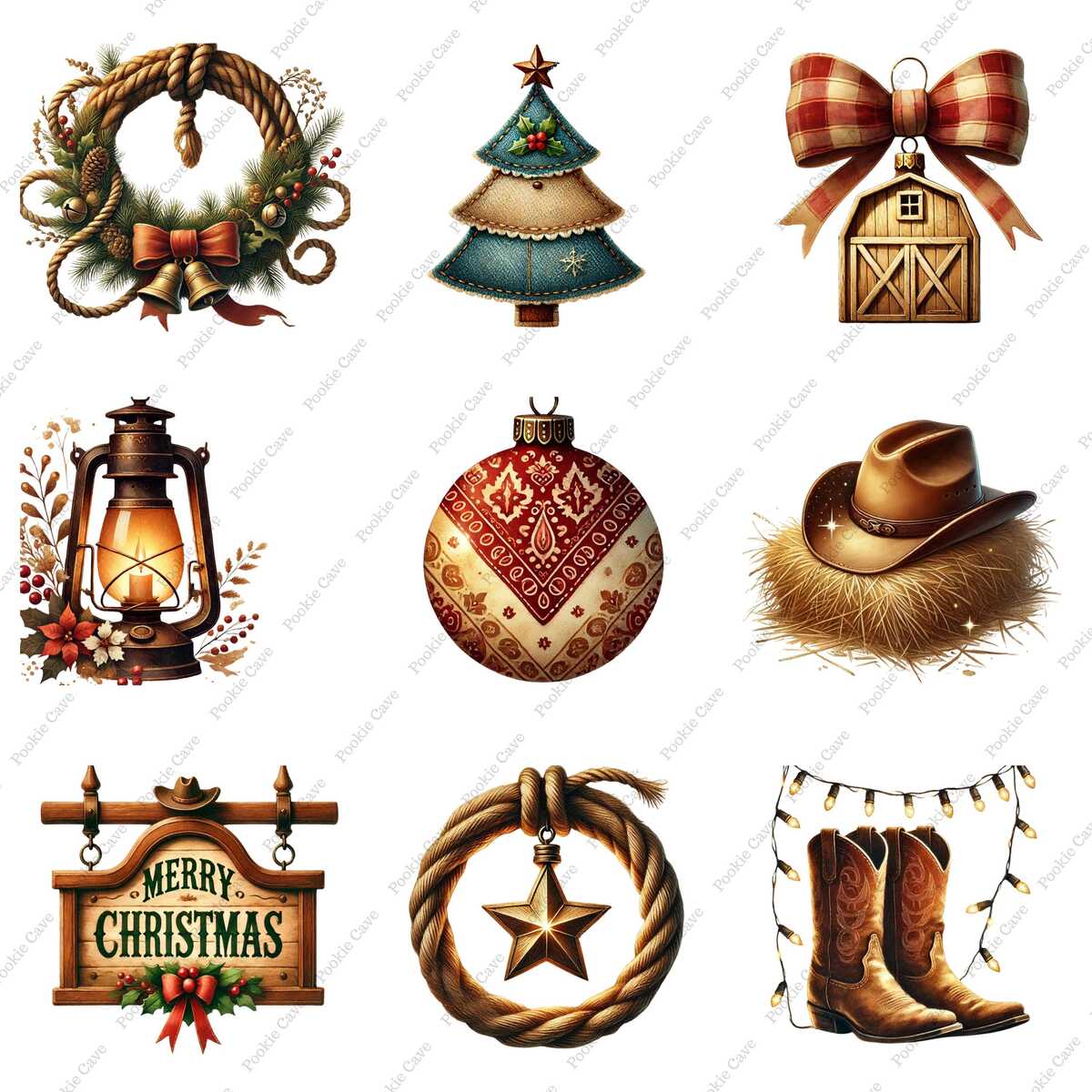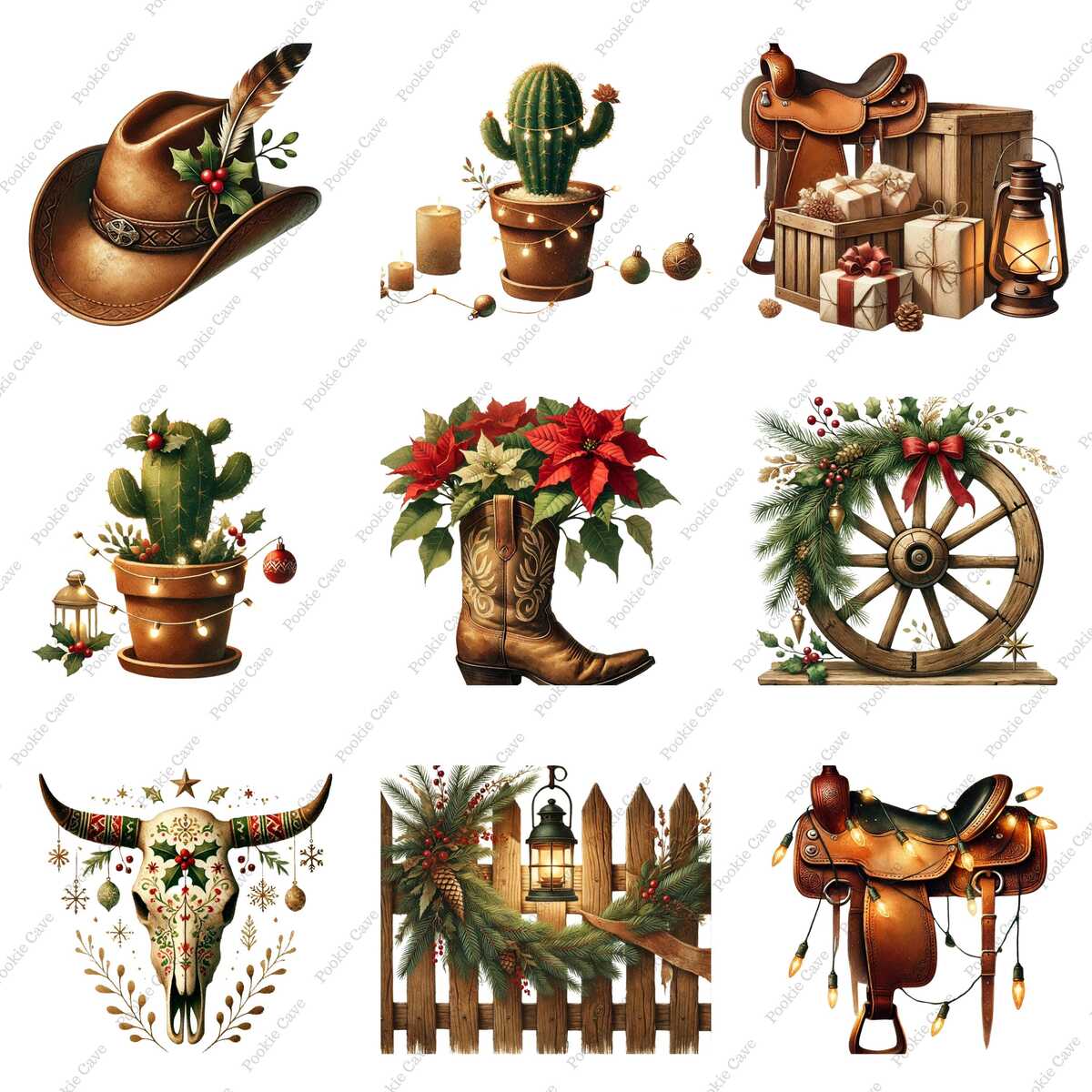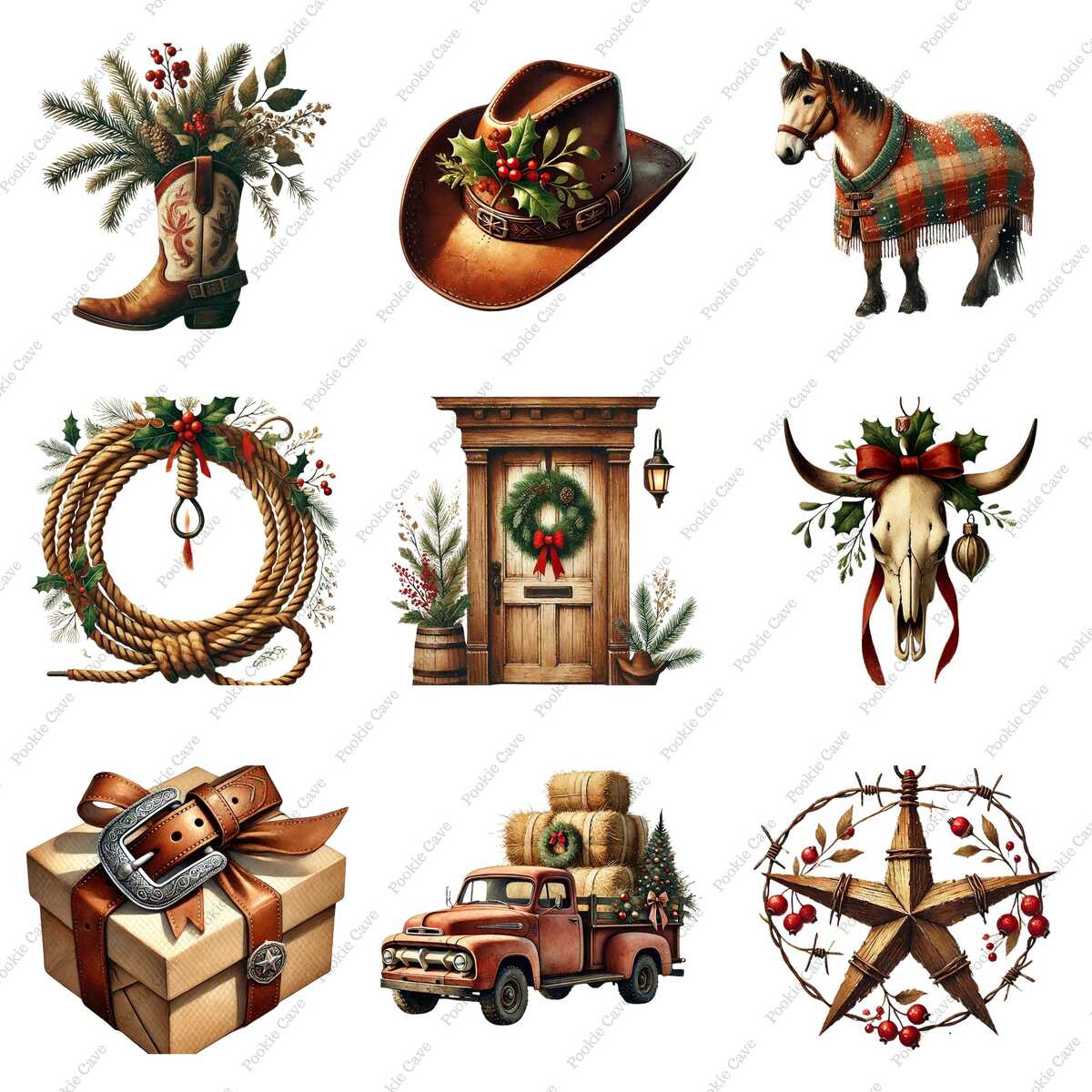 Cowboy Christmas Clipart Bundle | Rustic Western Watercolor PNGs (Digital Downlo