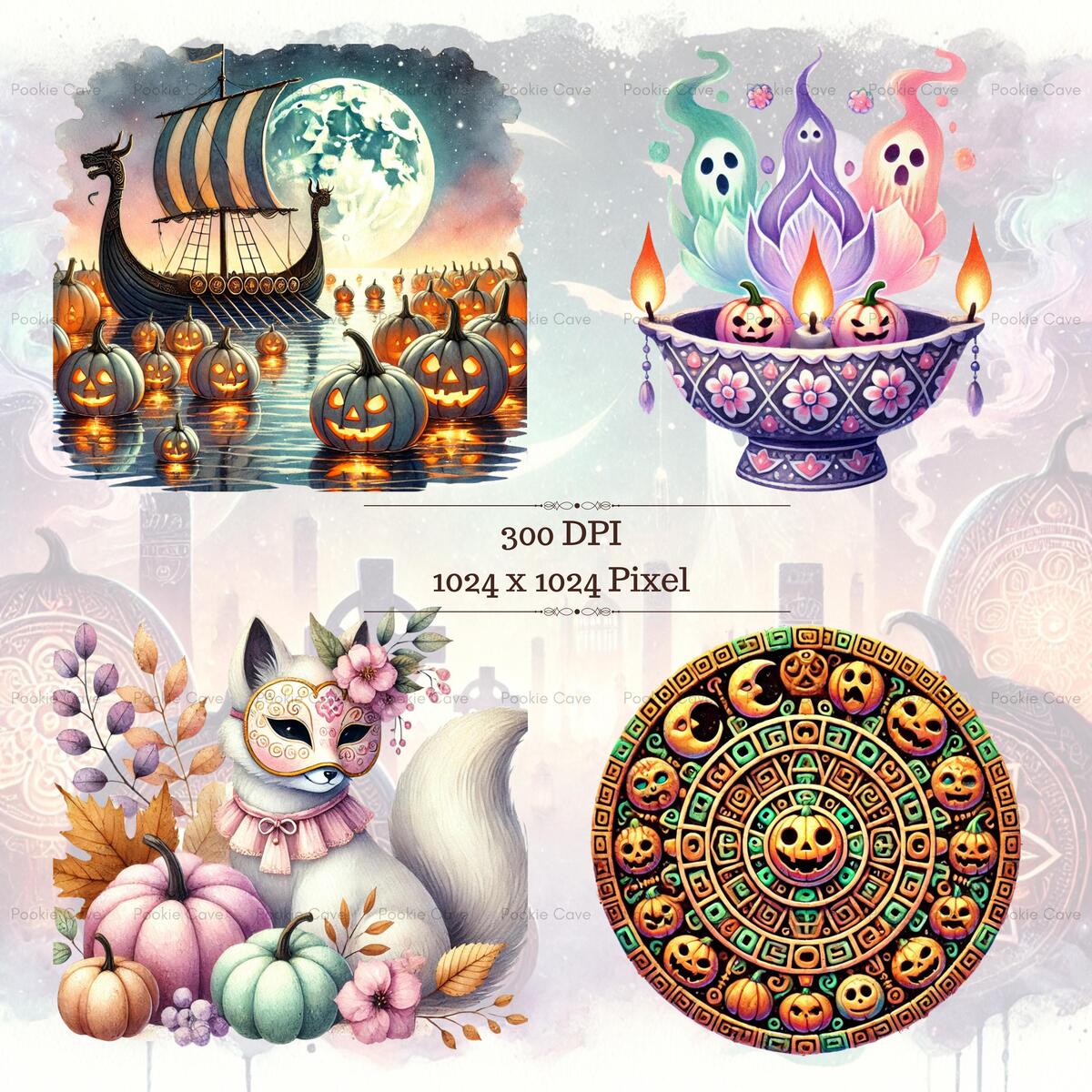 Folklore & Cultural Halloween Clipart Bundle – 22 PNG Ghosts, Pumpkins, Digital