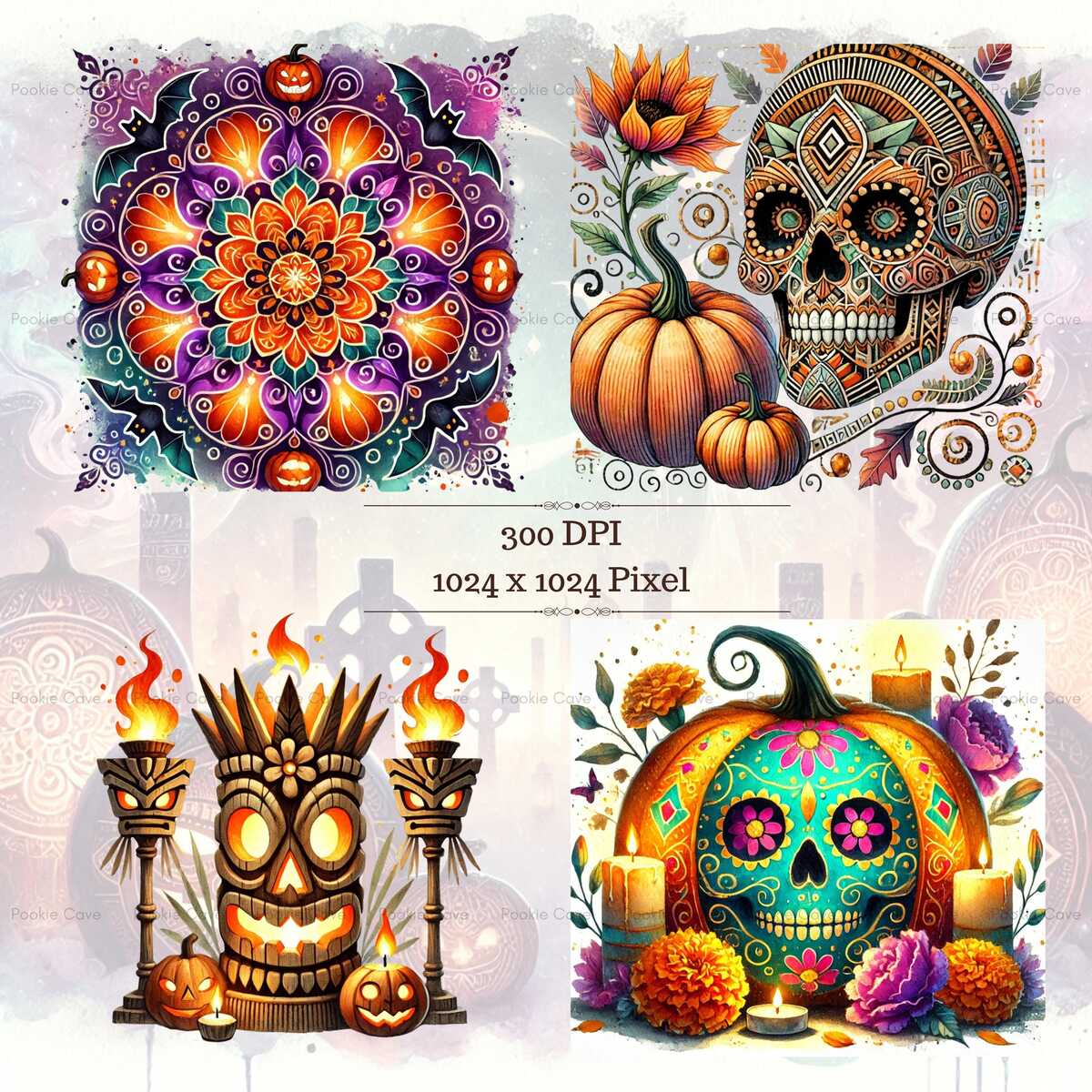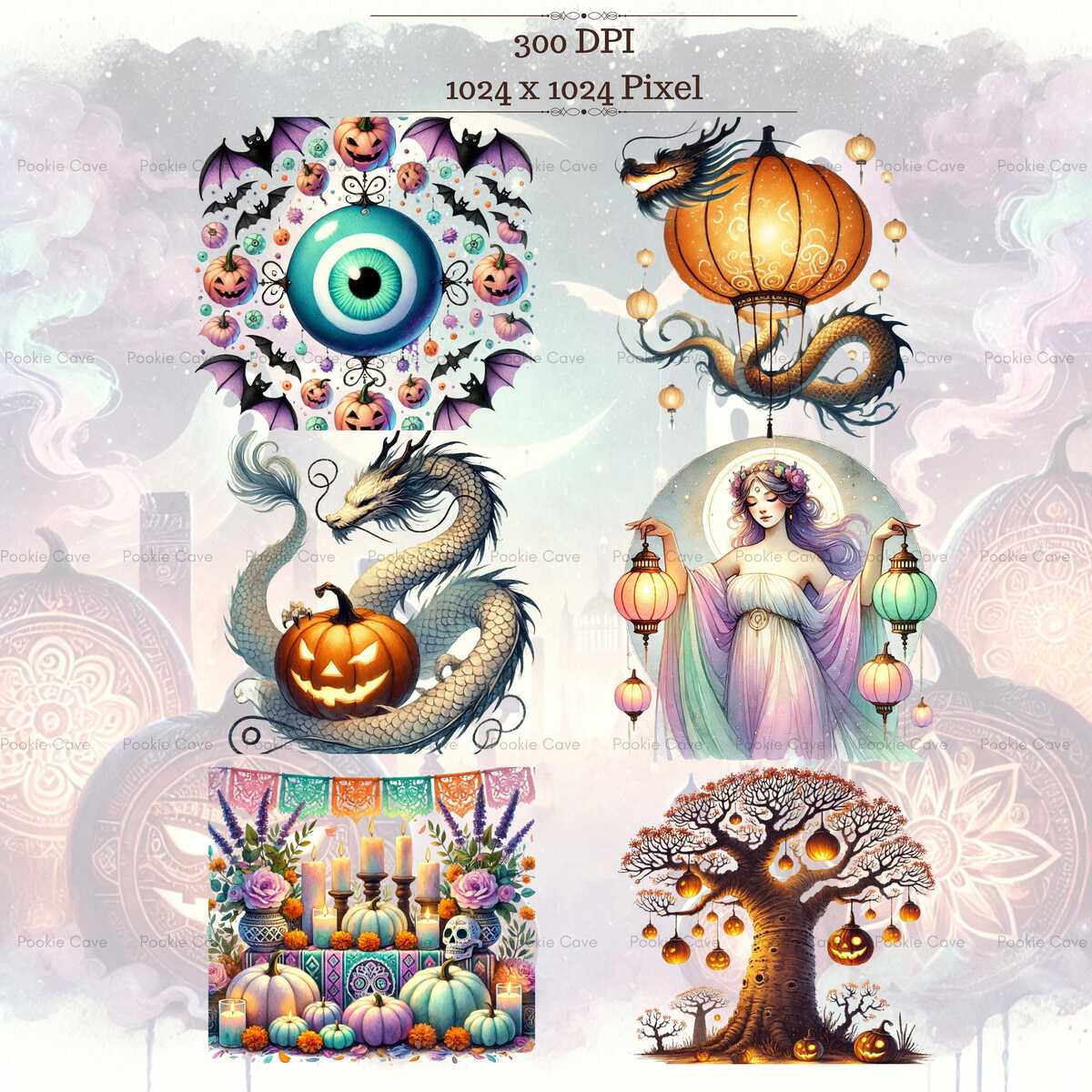 Featuring cultural twists on Halloween icons — from Celtic moons, Aztec skulls, and Japanese lanterns to Indian rangoli patterns, African masks, and Greek mythological spirits — this set is truly one-of-a-kind.