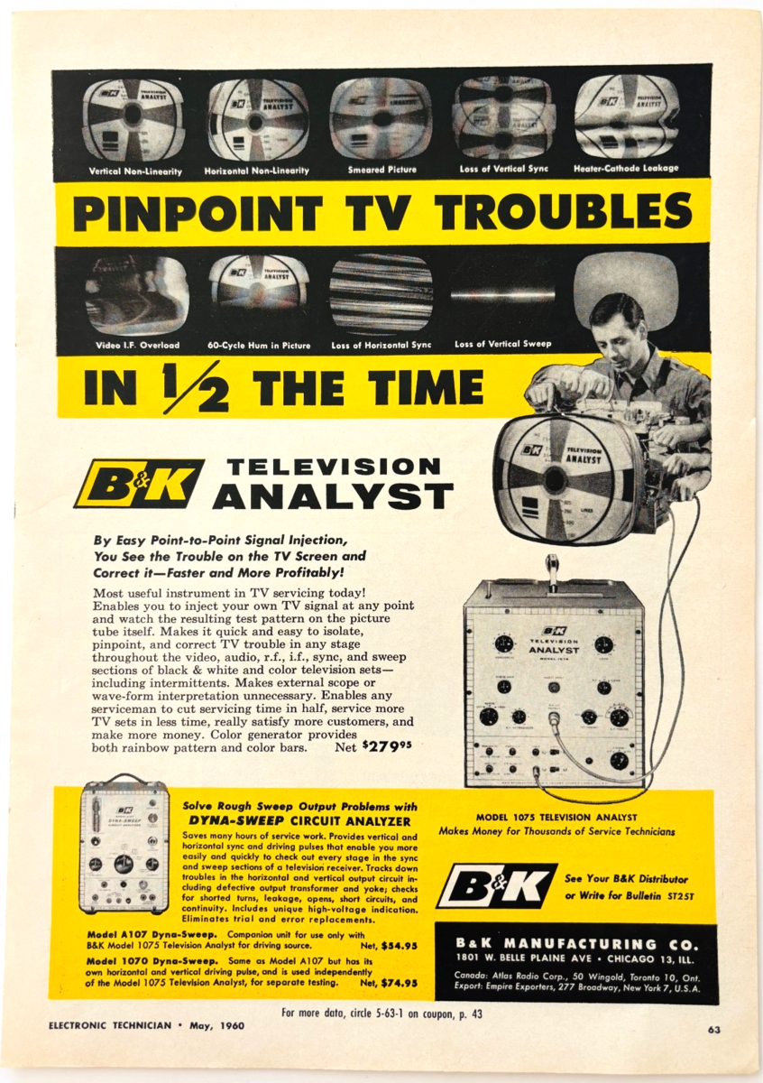 1960 B&K Television Analyst Device Advertisement Vintage TV Electronics DWU16D