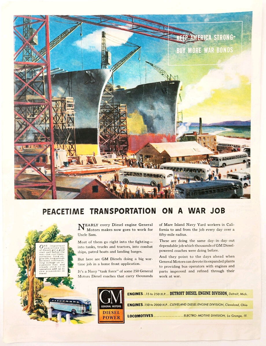 1943 General Motors WW2 Advertisement Military Battleships Transportation DWII26