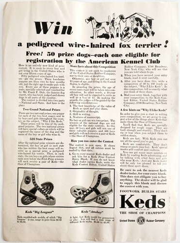 1930 Keds Shoes Sneakers Wire Haired Fox Terrier Advertisement Dogs Prize DWLL11