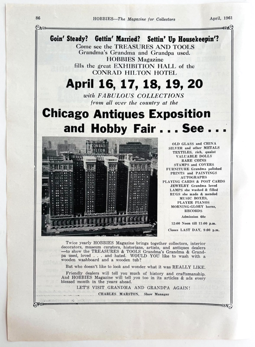1961 Chicago Antiques Exposition Fair Advertisement Conrad Hilton Hotel DWV10