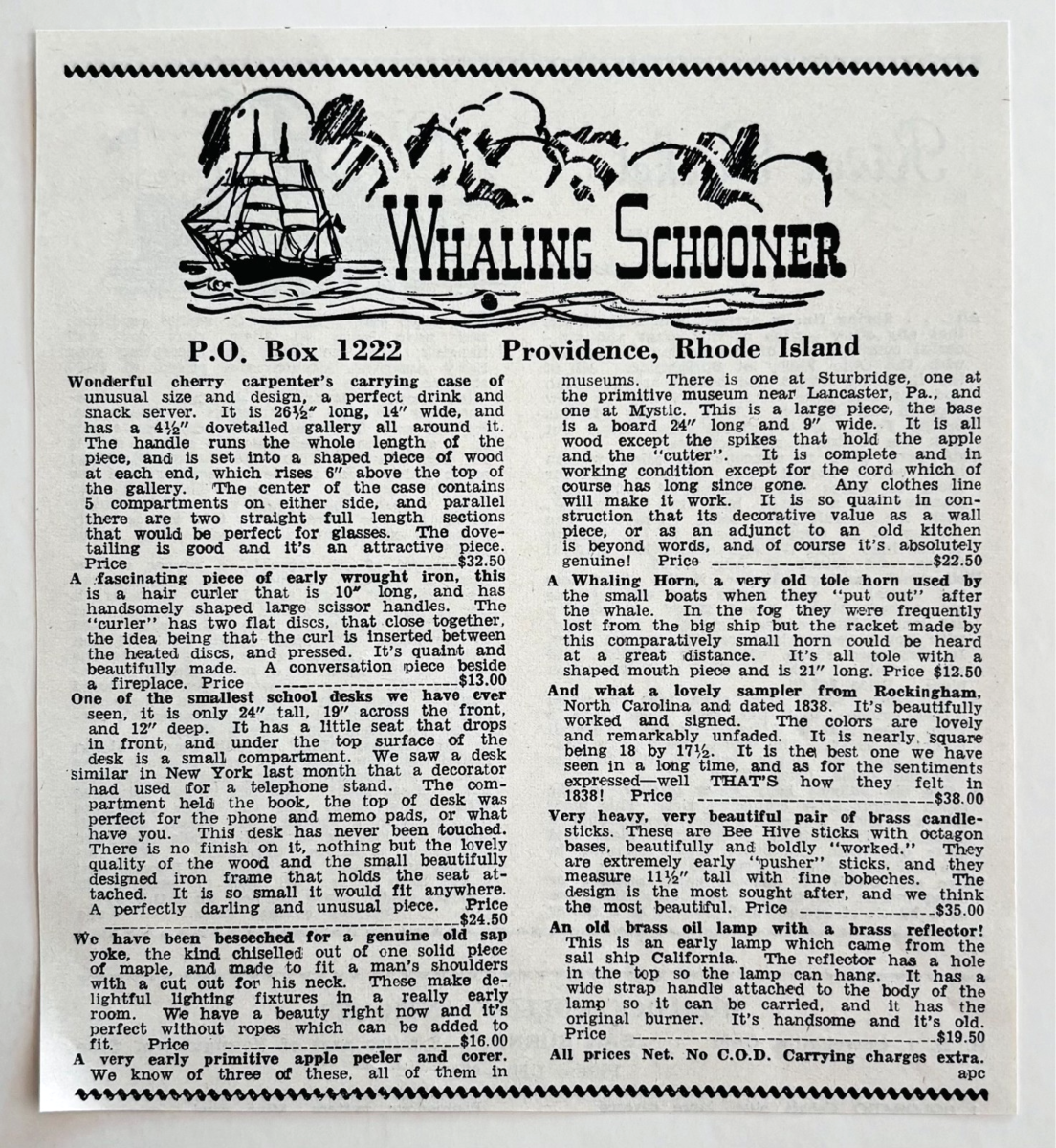 1961 Whaling Schooner Antique Shop Advertisement Providence Rhode Island DWV10