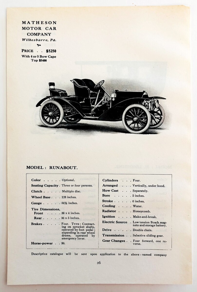 1908 Matheson Motor Co Roundabout Print Catalog Advertisement Automobilia F14E