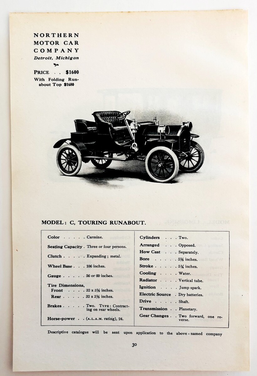1908 Northern Model C Runabout Print Catalog and 45 similar items