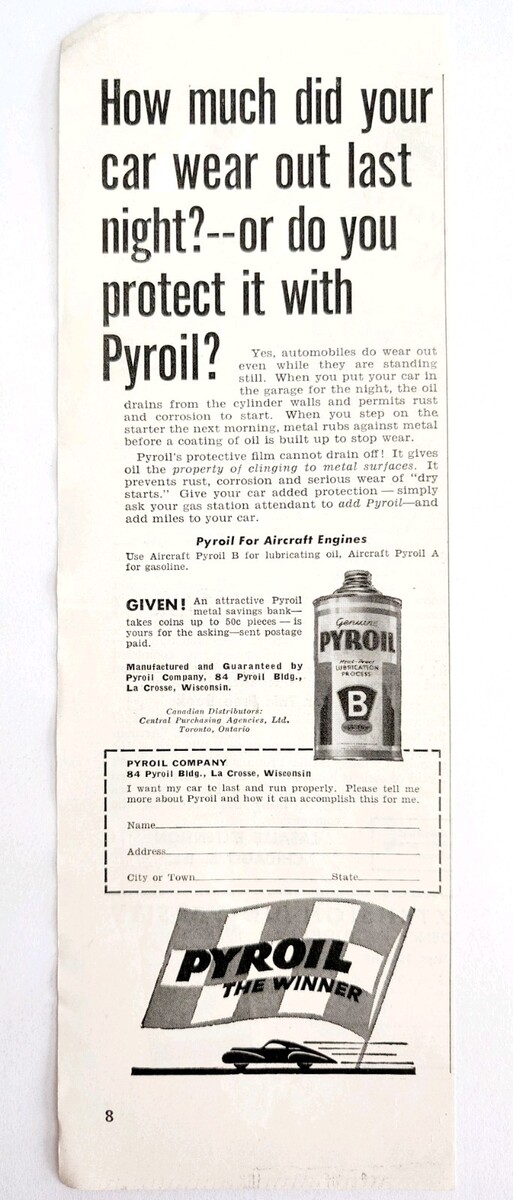 1948 Pyroil Company Motor Oil Advertisement and 47 similar items