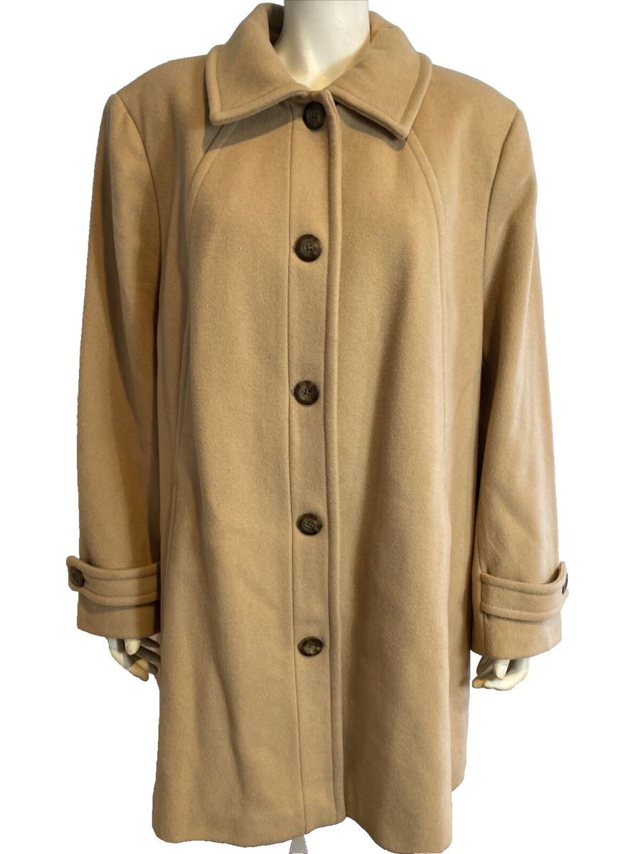 Lands' End Tan Wool Blend Lined Overcoat Size 22W