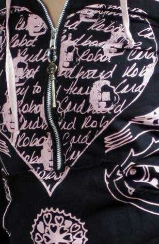 Cardboard Robot Mujer Negro Rosa La Llave A mi Corazon Alargado con Capucha Nwt