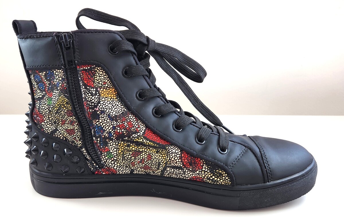 The Steve Madden Chaos 01M1 Men's Leather Upper High-Top Spiked Trainers in size 10M offer a stylish and edgy option for casual footwear. Featuring a lace-up closure, multicolor design, and leather upper, these sneakers are perfect for men looking to add a touch of flair to their outfit.