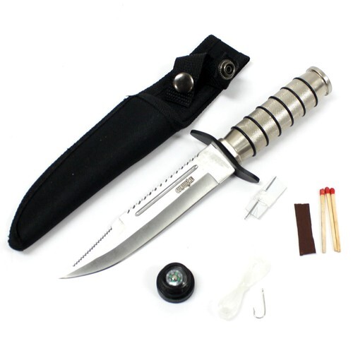 Hollow Steel Handle Holds a Compass, Matches, Fishing Line, Fishing Hook, and Thread and needle